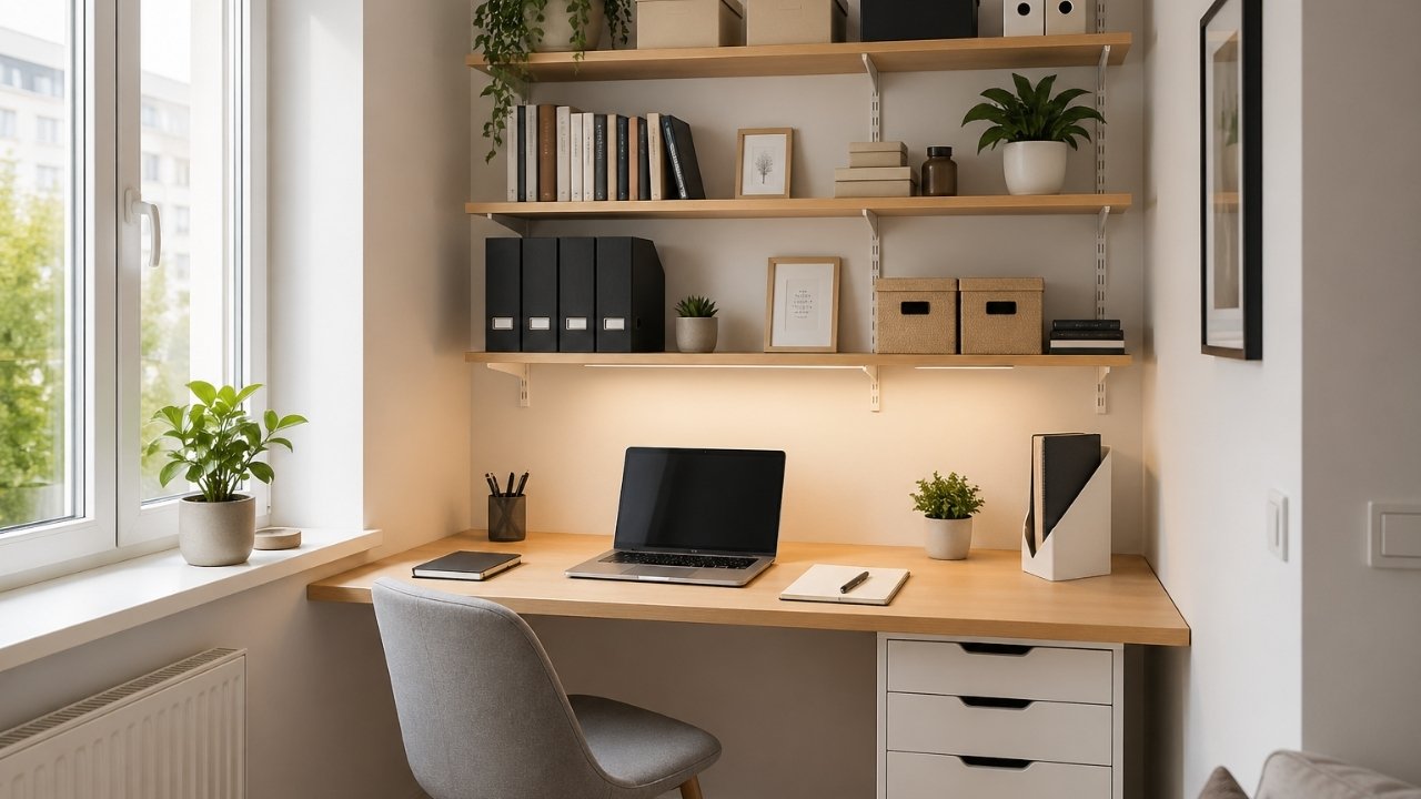 Nedostatak prostora nije prepreka za dobar radni kutak. Kada se prostor pravilno organizuje, ฤak i mali sto moลพe postati potpuno funkcionalno mesto za rad.